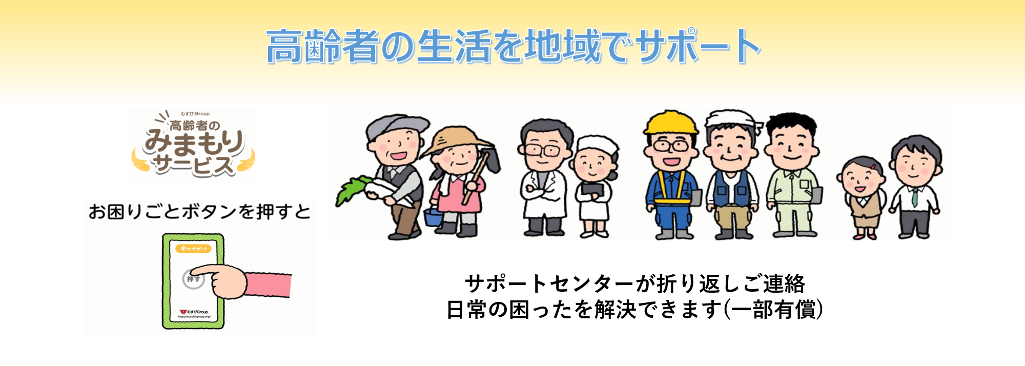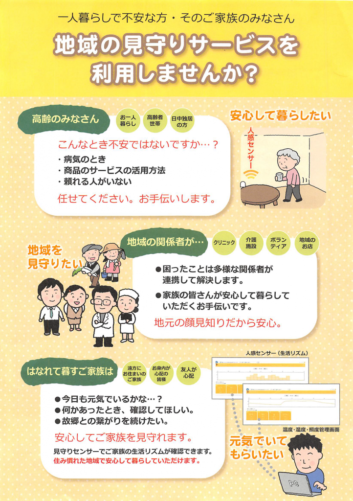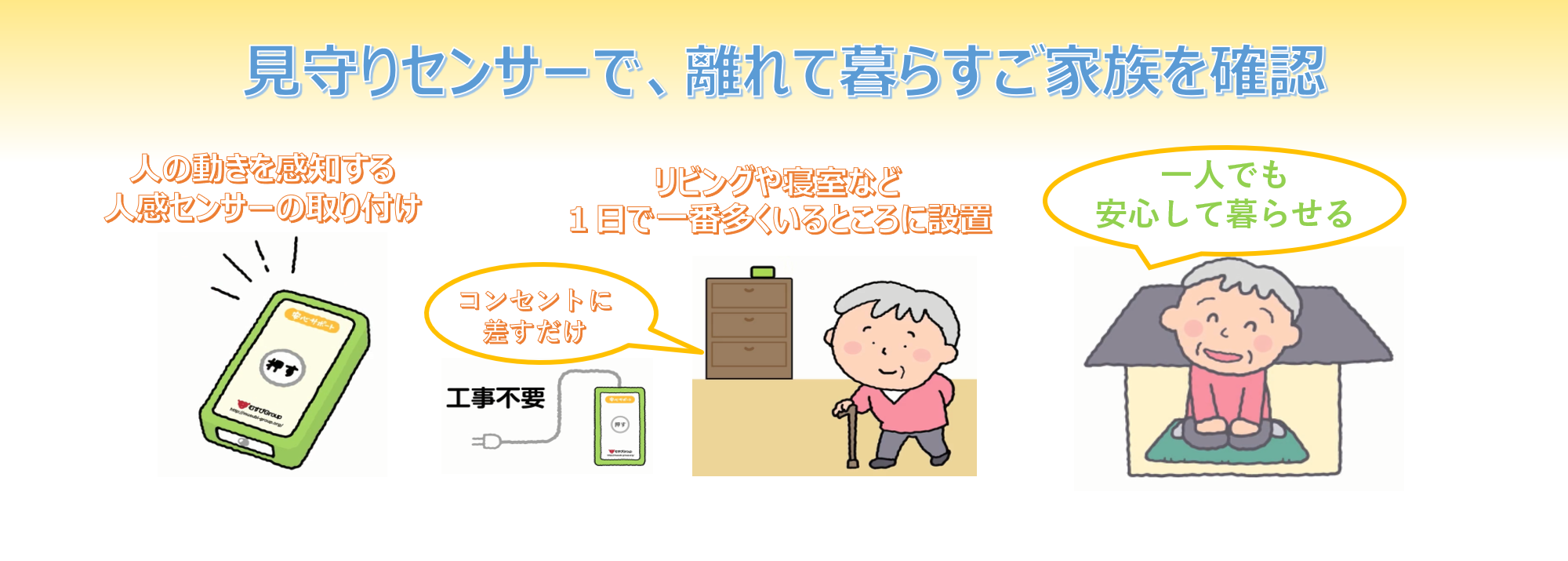 ・見守りサービスは、生活リズムの確認と、日々の生活のお困りごとの解消も目的とするものであり、見守り対象者 の緊急事態や安否をお知らせするものではありません。